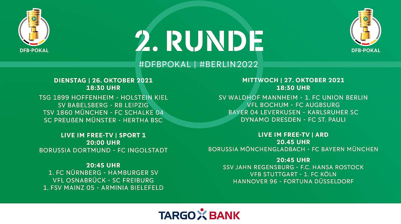 Der DFB-Pokal wird heute live im TV und LIVE-STREAM übertragen. Es ist alles schwer zu erklären das muss ich ganz ehrlich sagen fügte der 44-Jährige hinzu. In Abstimmung mit den TV-Partnern hat der Deutsche Fußball-Bund DFB die 2.